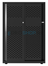 Dit is de Bisley schuifdeurkast Glide II van het formaat 116,1 cm hoogte bij 80 cm breedte en 47 cm diepte. De hoogte van de kast is variabel door de stelpootjes onder de kast: 114,9 tot 117,3 cm. De kleur van deze kast is Zwart RAL9005. De poedercoating van deze kleur is een structuurlak.