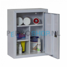 Deze medicijnkast is geschikt voor het overzichtelijk opbergen van medicijnen. Dit type is zowel met een metalen als met een transparante glazen deur leverbaar. Het kastje heeft een vaste vakverdeling en is uitgevoerd met een cilindersleutelslot met 2 sleutels.