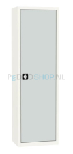 Deze draaideurkast is geheel na eigen wens samen te stellen. De draaideurkast kent voor de deuren de kleurcode: Lichtgrijs ral 7035 en voor de ombouw: Wit ral 9010.