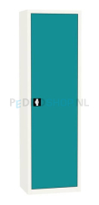 Deze draaideurkast is geheel na eigen wens samen te stellen. De draaideurkast kent voor de deuren de kleurcode: Mint ral 5018 en voor de ombouw: Wit ral 9010.