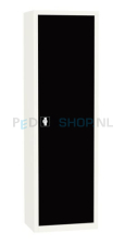 Deze draaideurkast is geheel na eigen wens samen te stellen. De draaideurkast kent voor de deuren de kleurcode: Zwart ral 9005 en voor de ombouw: Wit ral 9010.