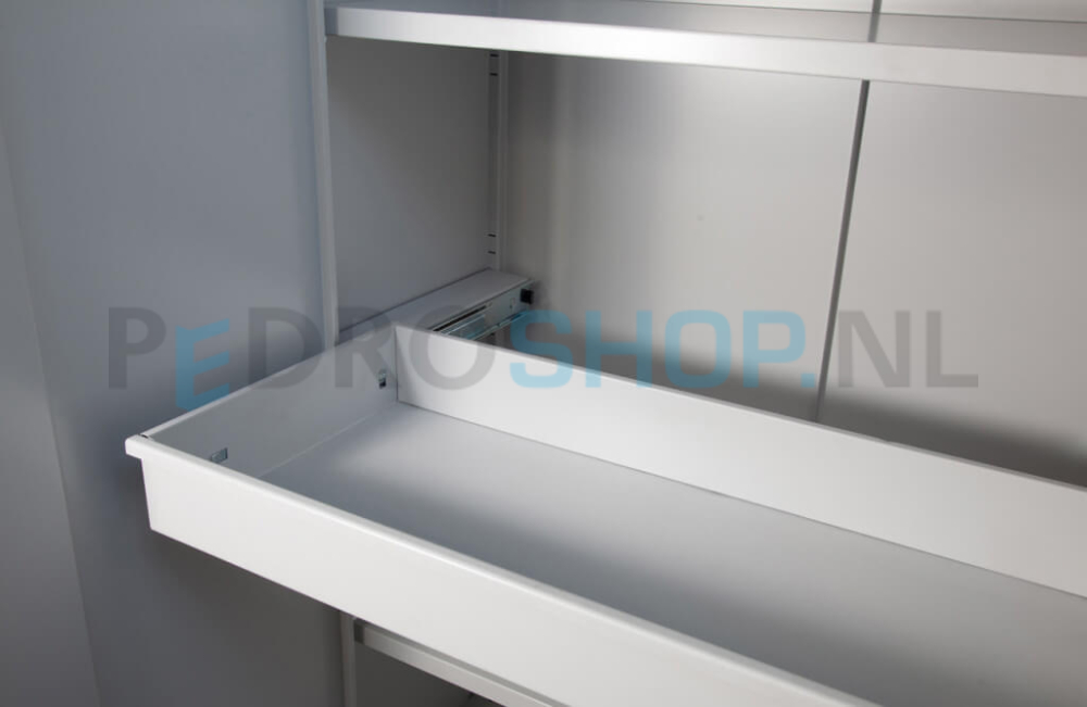 Documentatie, ordners of gereedschap kan veilig in de draaideurkast SQ-201 worden opgeborgen. De draaideurkast is uitgevoerd met een draaigreepsluiting en wordt geleverd met 4 legborden.