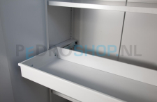 De uittrekbare lade is een praktische uitbreiding voor de SQ draaideurkast SQ-202 (80 cm breed). Ideaal voor het veilig en overzichtelijk opbergen van kleinere kantoorartikelen, documenten of persoonlijke eigendommen. De lade is eenvoudig te monteren en soepel uittrekbaar, wat zorgt voor extra gebruiksgemak en efficiëntie in iedere werkomgeving.