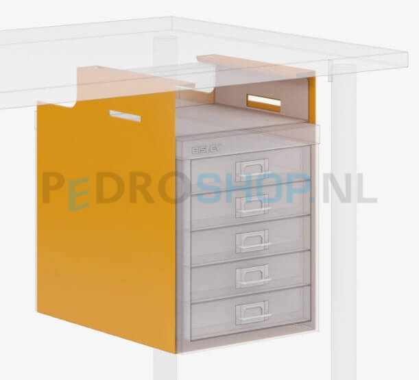 Voor het vullen van de meerladenkast met de gewenste documentatie of onderdelen wordt aangeraden om te beginnen bij de onderste lade. En zo steeds een lade hogerop werken.
