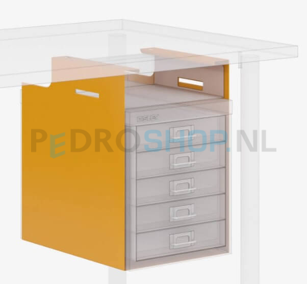 De serie meerladenkasten is leverbaar in 10 verschillende kleuren! Zo is er altijd wel een kleur beschikbaar welke past bij uw kantoor- of thuisinterieur. Deze meerladenkast kent de kleur zonnebloemgeel. Deze gele kleur kent de RAL kleur RAL1004. De coating is een structuur coating.