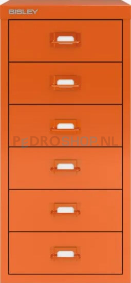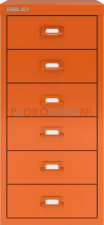 Meerladenkast Bisley -6, A4 formaat, 6 laden, handgreep gekleurd, oranje