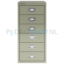 Dit is de Bisley meerladenkast met 6 laden uit de 29-serie. De meerladenkast is volledig vervaardigd uit metaal. De hoogte van de kast is 59 cm en de breedte 27,9 cm. De diepte van de kast is 38 cm – uitermate geschikt voor opbergen van A4 formaat documentatie.