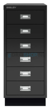 Meerladenkast Bisley -6, A4 formaat, 6 laden, zwart, incl. sokkel