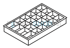 Naast een 24-vaks inzetbakken kennen we ook de formaten 4,9, 16 en 35 vaks.